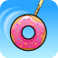 The donut is swinging gently from a rope. To score a donut slam dunk, time the donut's release to make it fall nicely into the box.